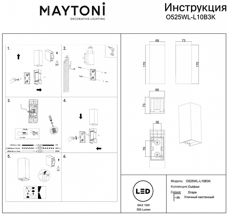 Накладной светильник Maytoni Outdoor Drape O525WL-L10B3K