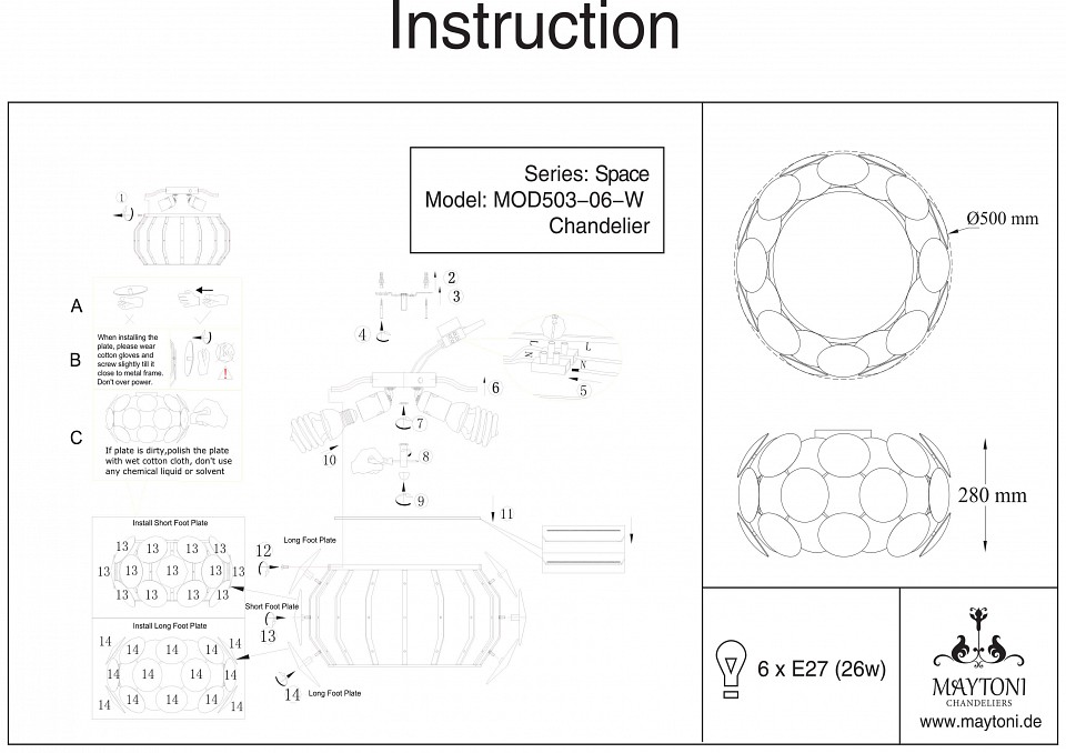 Накладной светильник Maytoni Space MOD503-06-W
