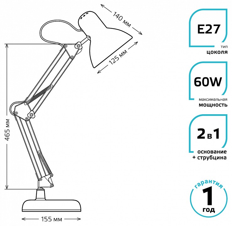 Настольная лампа офисная Gauss GT002 GT0024