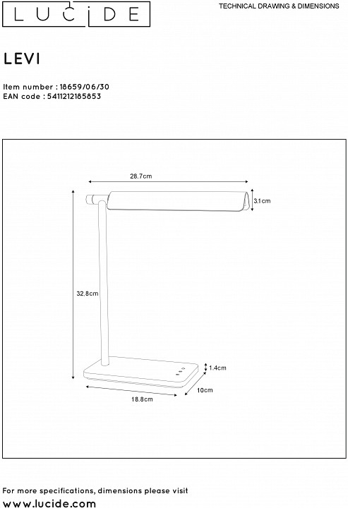 Настольная лампа офисная Lucide Levi 18659/06/30