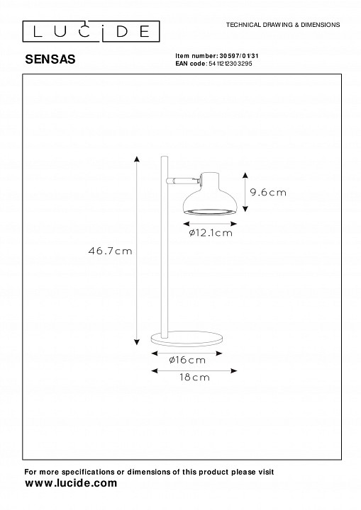 Настольная лампа офисная Lucide Sensas 30597/01/31