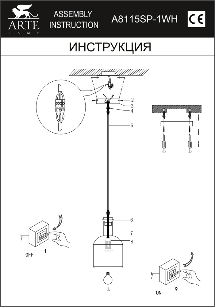 Подвесной светильник Arte Lamp Accento A8115SP-1WH