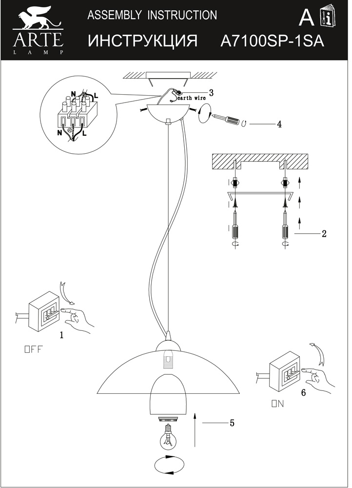 Подвесной светильник Arte Lamp Conca A7100SP-1SA