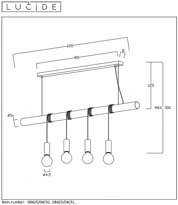 Подвесной светильник Lucide Jaime 08425/04/30