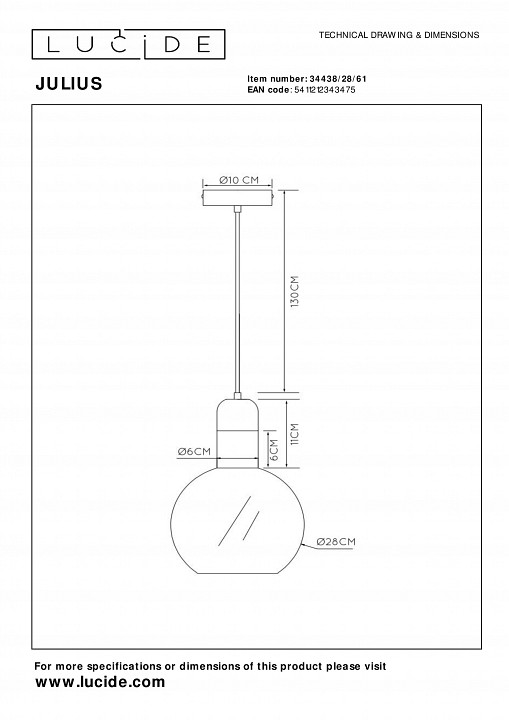 Подвесной светильник Lucide Julius 34438/28/61