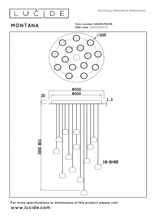 Подвесной светильник Lucide Montana 68400/92/96