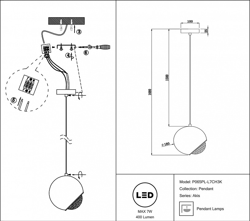 Подвесной светильник Maytoni Akis P065PL-L7CH3K