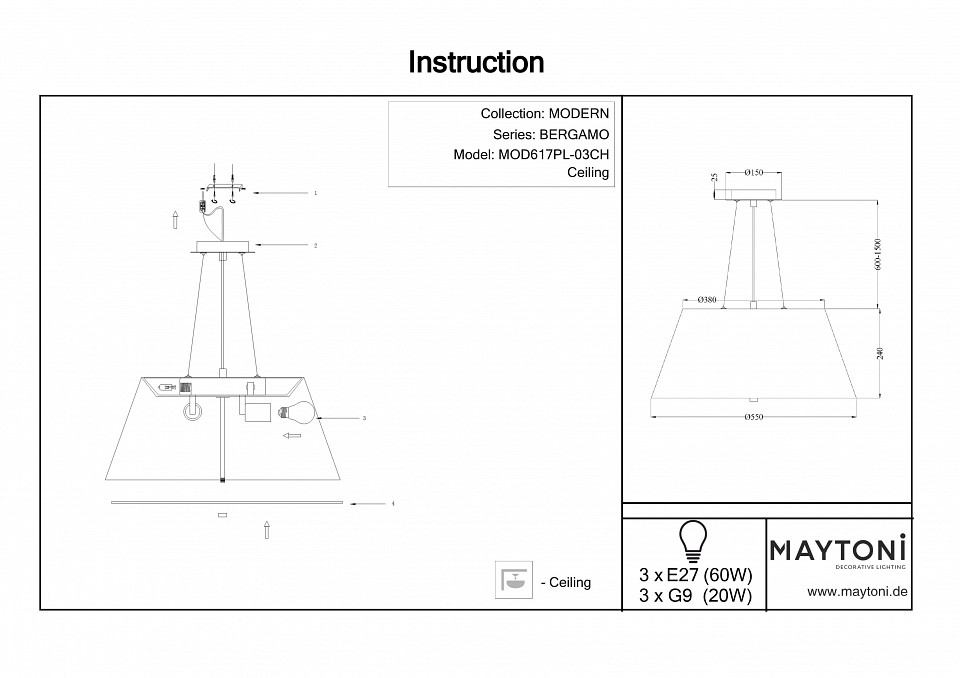 Подвесной светильник Maytoni Bergamo MOD617PL-03CH