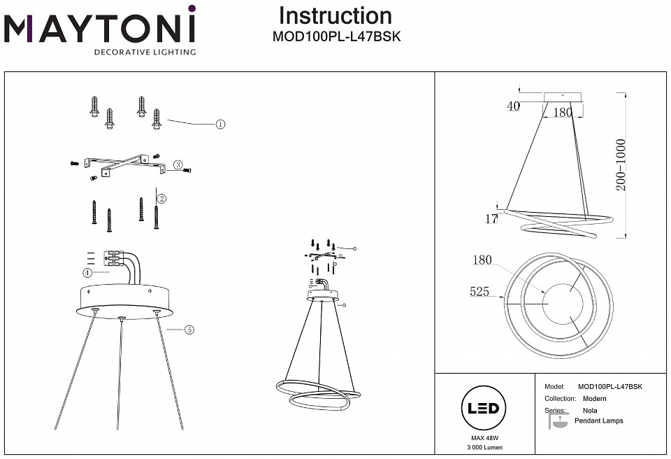 Подвесной светильник Maytoni Nola MOD100PL-L47BSK