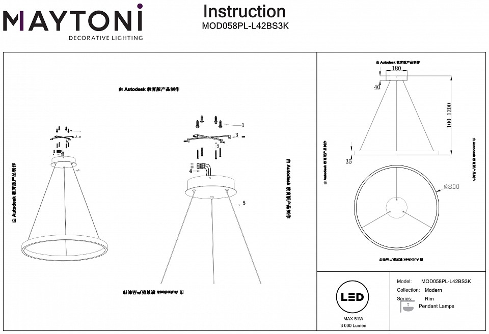 Подвесной светильник Maytoni Rim MOD058PL-L42BS3K