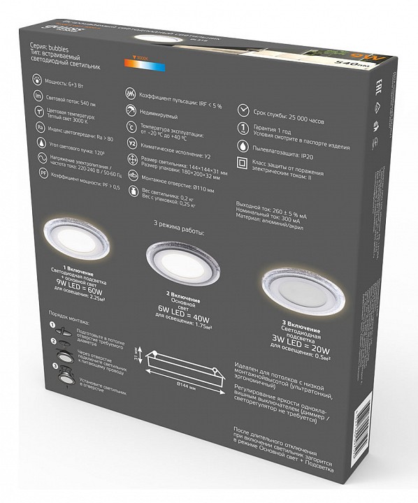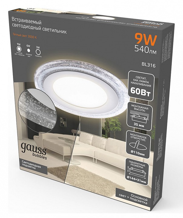 Встраиваемый светильник Gauss Bubbles BL316