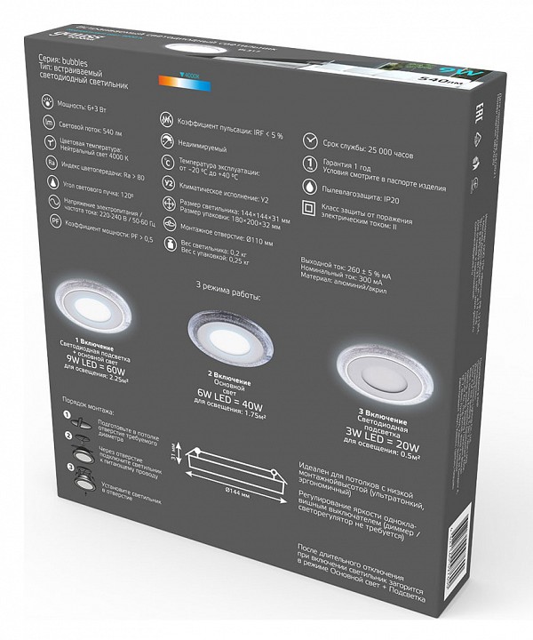 Встраиваемый светильник Gauss Bubbles BL317