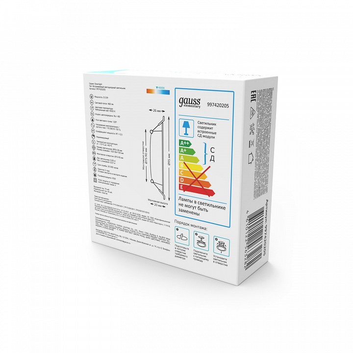 Встраиваемый светильник Gauss Elementary 997420205