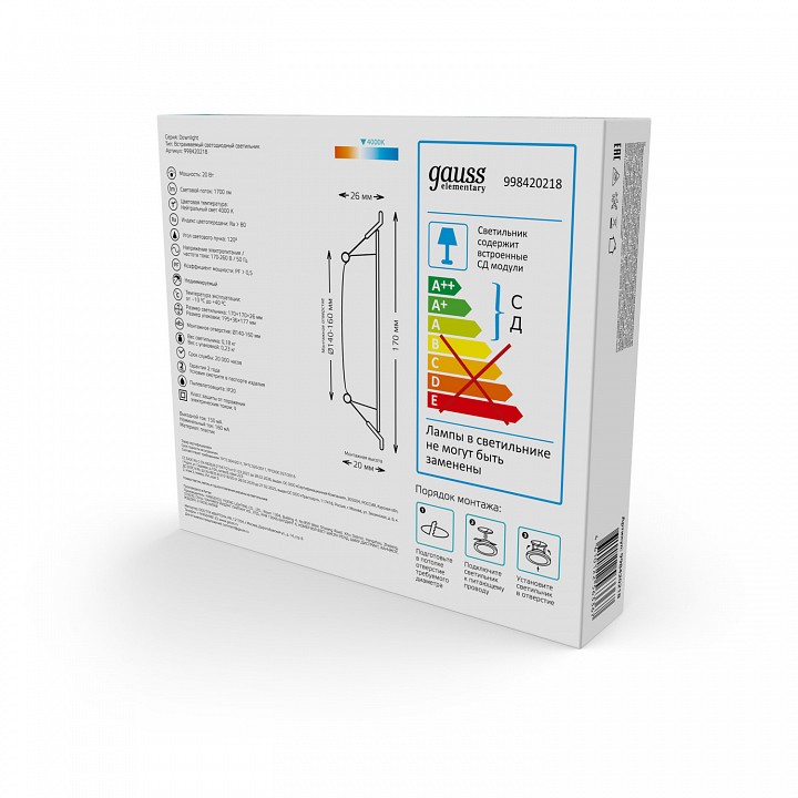 Встраиваемый светильник Gauss Elementary 998420218
