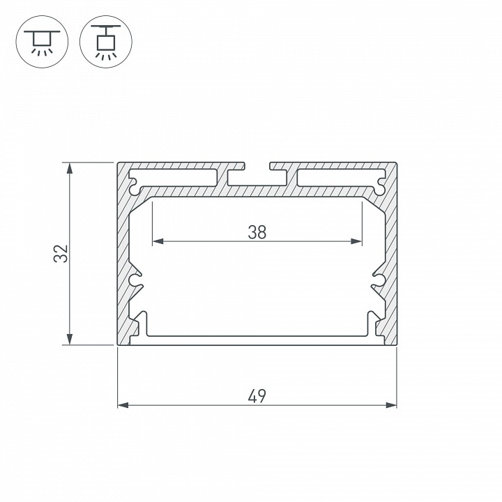Подвесной/накладной профиль 49х32мм для линейных светильников. Анодированный алюминий. Длина 2000мм. Цена за 1м. Экраны, заглушки отдельно.