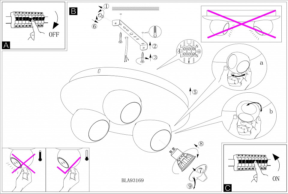 Направление плафонов: