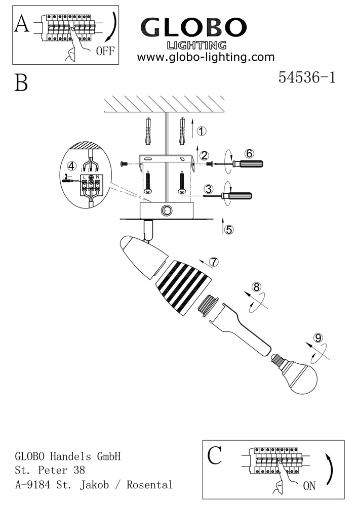 Бра Globo Caleb 54536-1