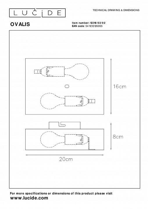 Бра Lucide Ovalis 2219/02/02