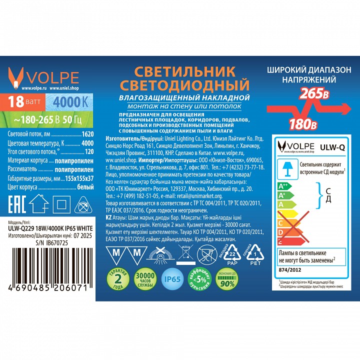 Накладной светильник Uniel ULW UL-00013190