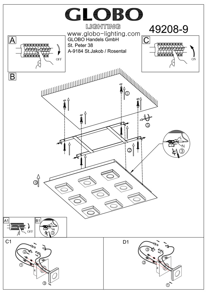 Потолочная люстра Globo Cayman 49208-9