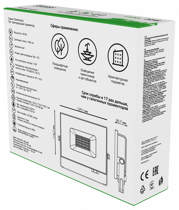Настенно-потолочный прожектор Gauss Elementary 613100620