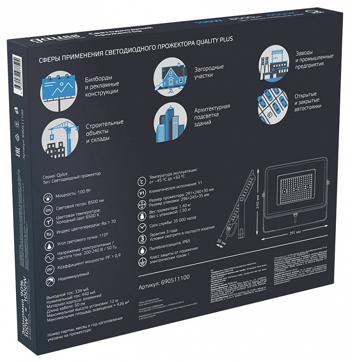 Настенно-потолочный прожектор Gauss Qplus 690511100
