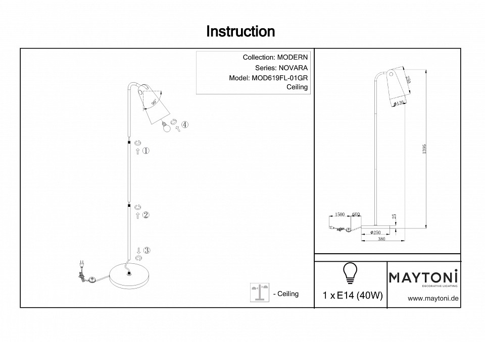 Торшер Maytoni Novara MOD619FL-01GR