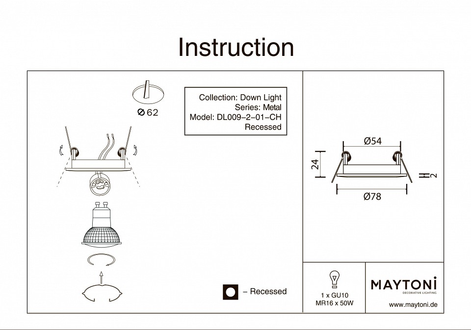 Встраиваемый светильник Maytoni Metal Modern DL009-2-01-CH
