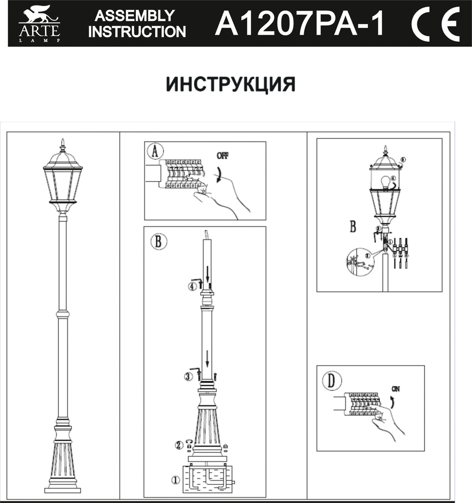 Фонарный столб Arte Lamp Genova A1207PA-1BS